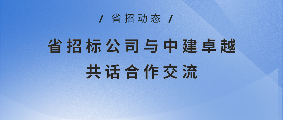 8月20日,中建卓越建设管理有限公司(以下简称“中建卓越”)董事长邬敏率队到访省招标公司,省招标公司党委书记、董事长黎明参加座谈会,双方就加强全过程工程咨询领域的合作进行深入交流。
