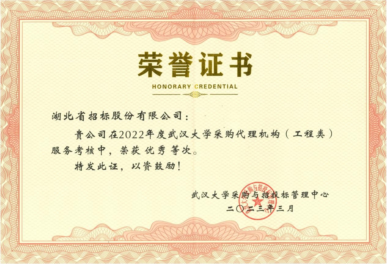 近日,武汉大学采购与招投标管理中心宣布了2022年度武汉大学采购代理机构服务考核结果,省招标公司在考核中脱颖而出,荣获工程类优秀等次。