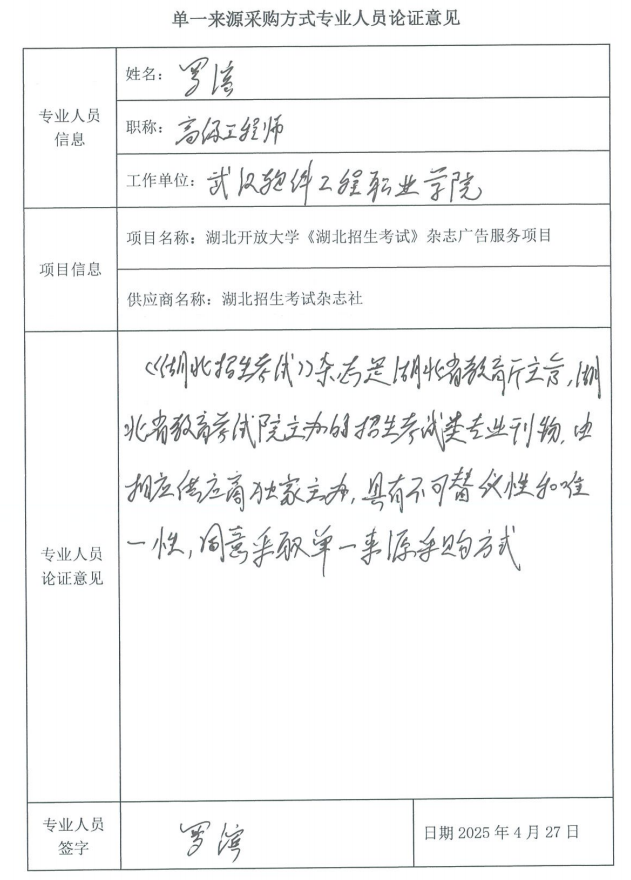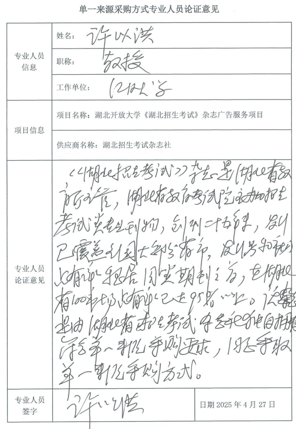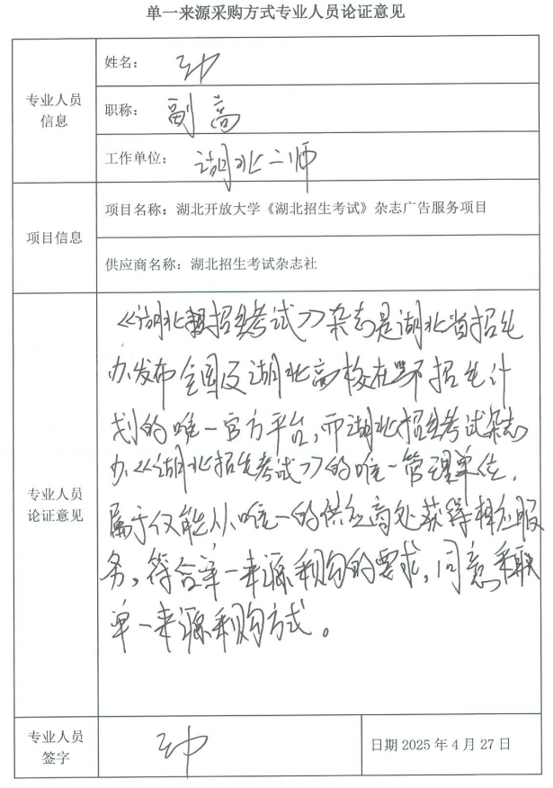 项目名称:湖北开放大学《湖北招生考试》杂志广告服务项目
